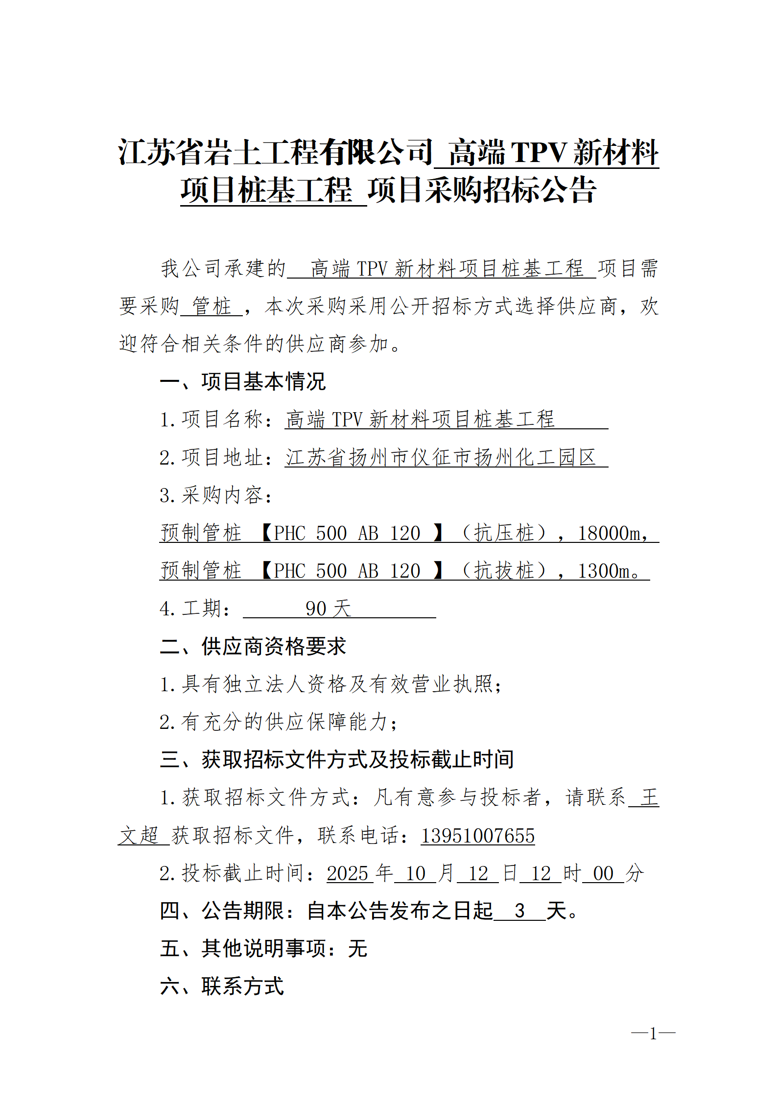 江苏省岩土工程有限公司-高端TPV新材料项目桩基工程管桩采购招标公告.pdf
