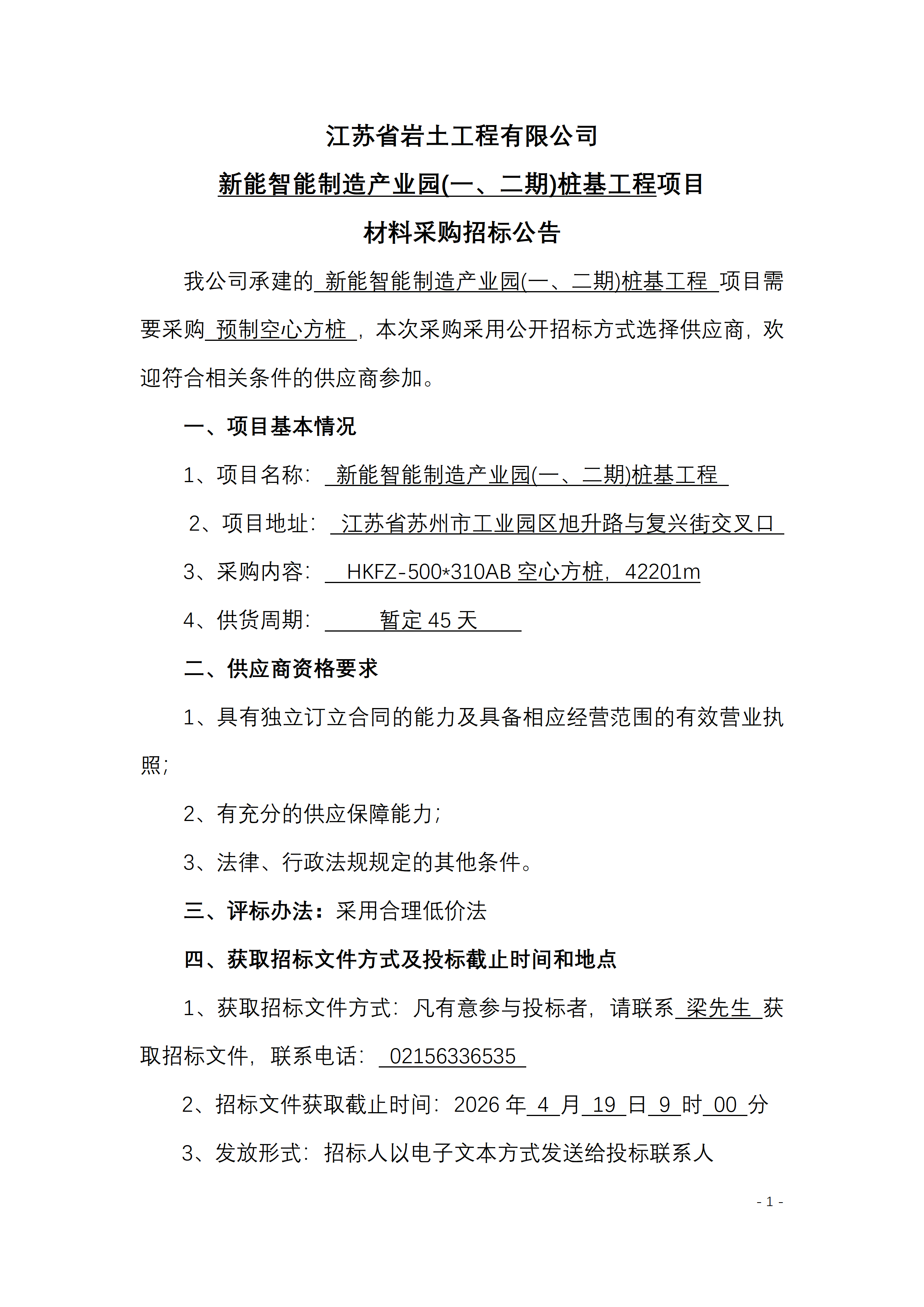 江苏省岩土工程有限公司新能智能制造产业园(一、二期)桩基工程项目材料采购招标公告.pdf