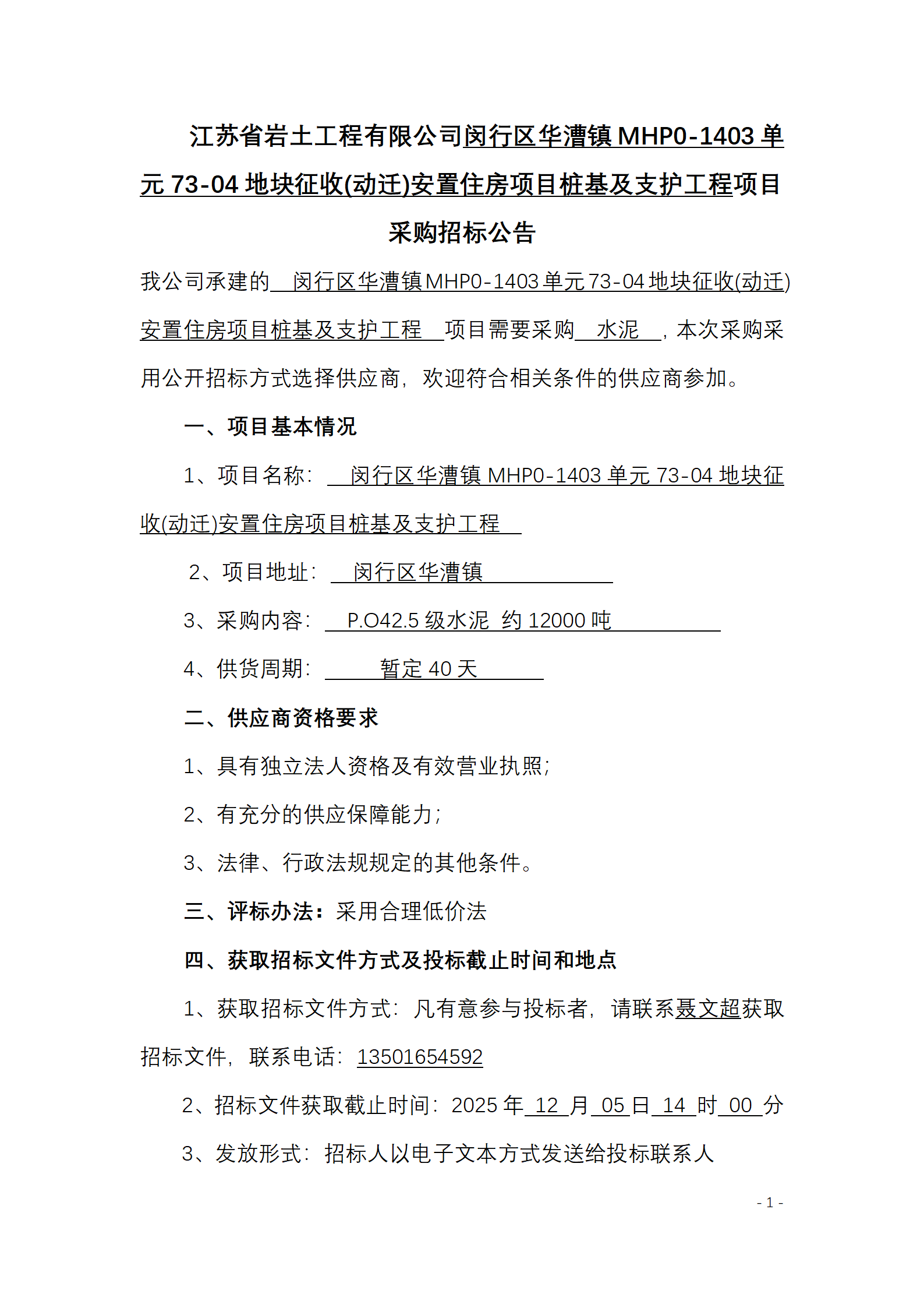 江苏省岩土工程有限公司闵行区华漕镇MHP0-1403单元73-04地块征收(动迁)安置住房项目桩基及支护工程项目采购招标公告.pdf